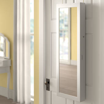Ebern Designs Wall Door Mounted Led Mirror Jewellery Cabinet