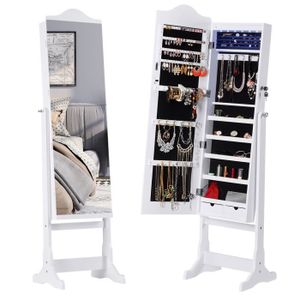 Revêtement intérieur en velours floqué noir. Langria armoire à bijoux avec miroir à pied armoire bijoux miroir verrouillable2 tiroirs 3 angles de stockage organiseur réglable pour les bagues boucles doreilles bracelets broches blanc.