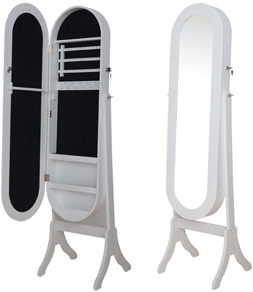 904031 White Finish Wood Free Standing Cheval Floor Mirror Jewelry