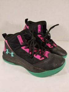 Under Armour Girls Black And Pink Basketball Shoes Sneakers Size