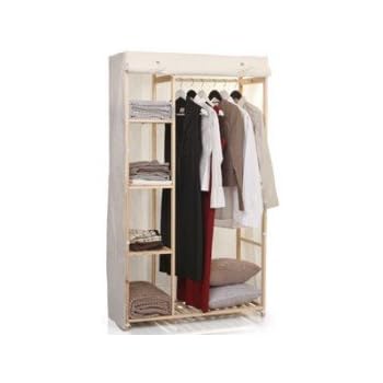 Armoire Penderie En Bois Et Tissus Amazon Fr Cuisine Maison