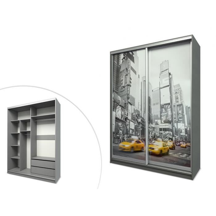Armoire Avec Impression New York Citadine 2 Portes Coulissantes