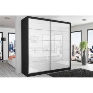 Armoire Salsa Blanc Laque 2 Portes Coulissantes 230 Cm Portes Noir