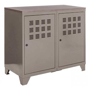 Armoire Basse Metallique 2 Portes Metal Gris Industriel