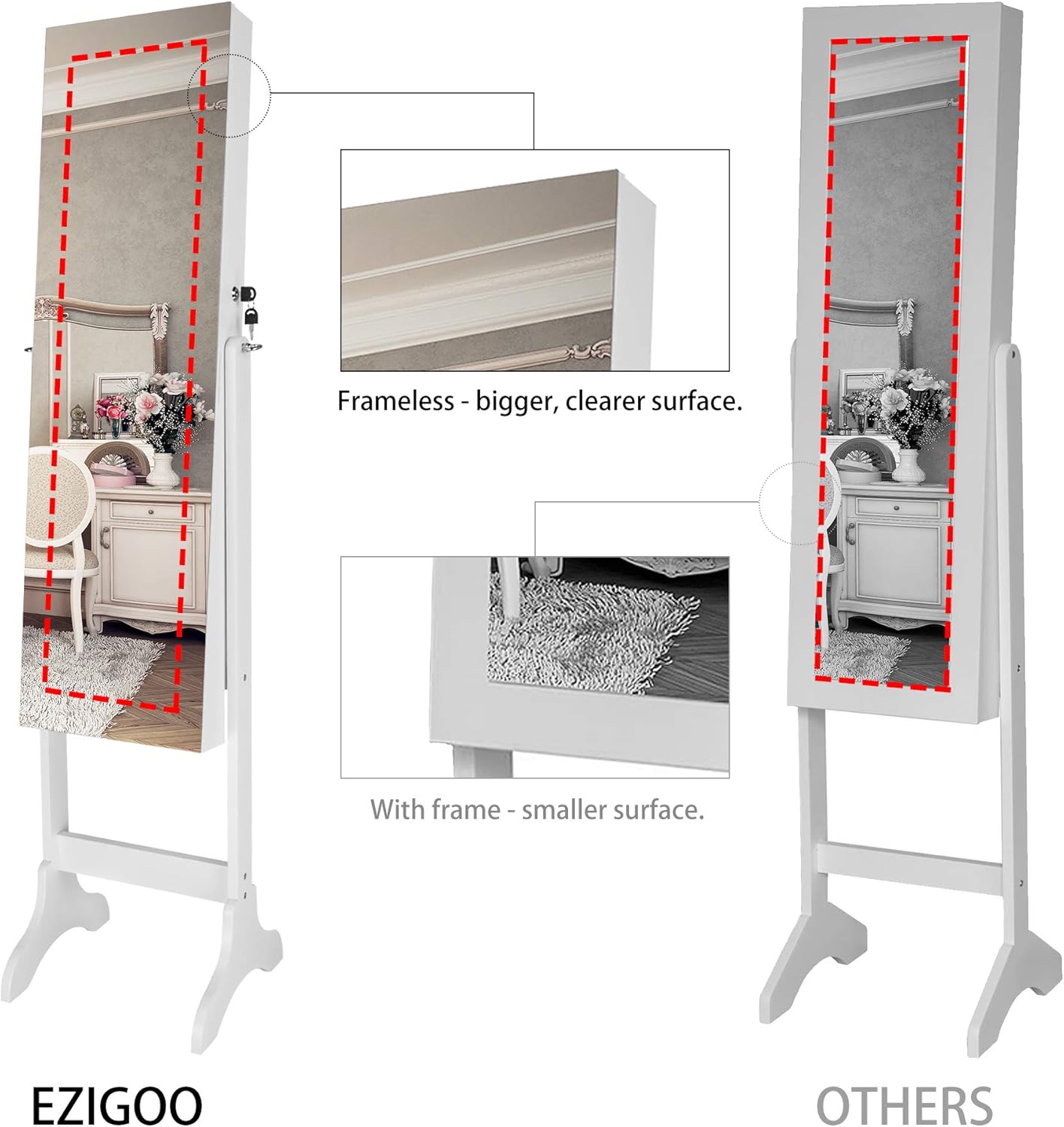 Nicetree Armoire A Bijoux Sur Pied Avec Miroir Plein Sans Cadre
