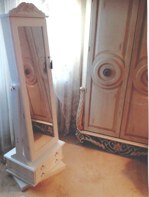 Removable Decorative Top Locking Mirrored Cheval Jewelry Armoire
