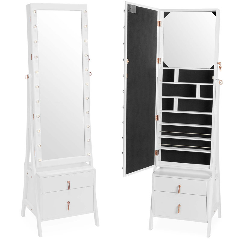 Mercer41 Caudill Free Standing Jewelry Armoire With Mirror