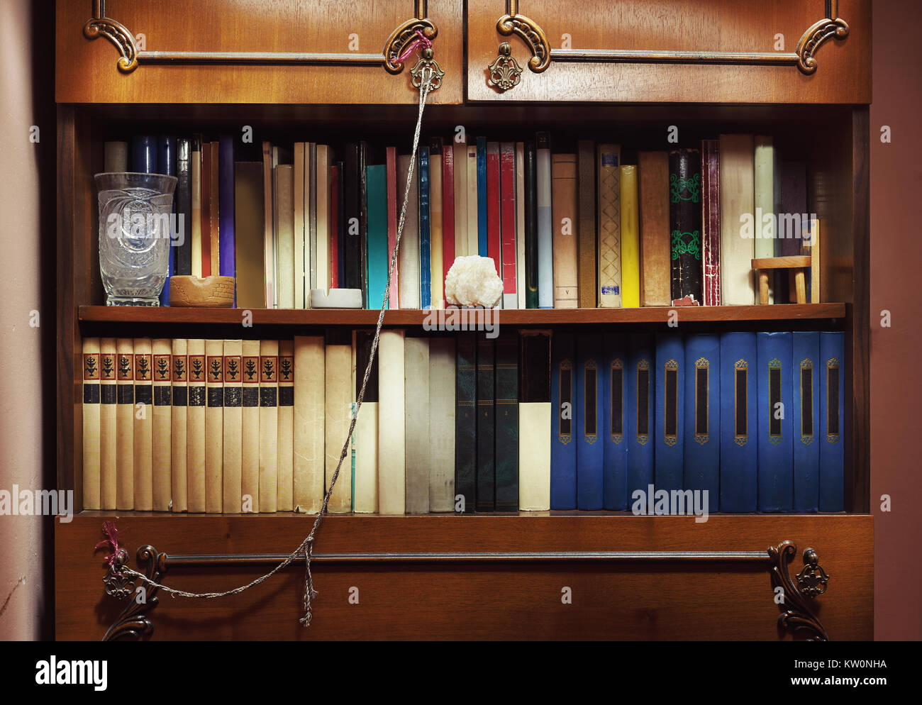 Vue Rapprochee De La Vieille Armoire Pleine De Livres Anciens