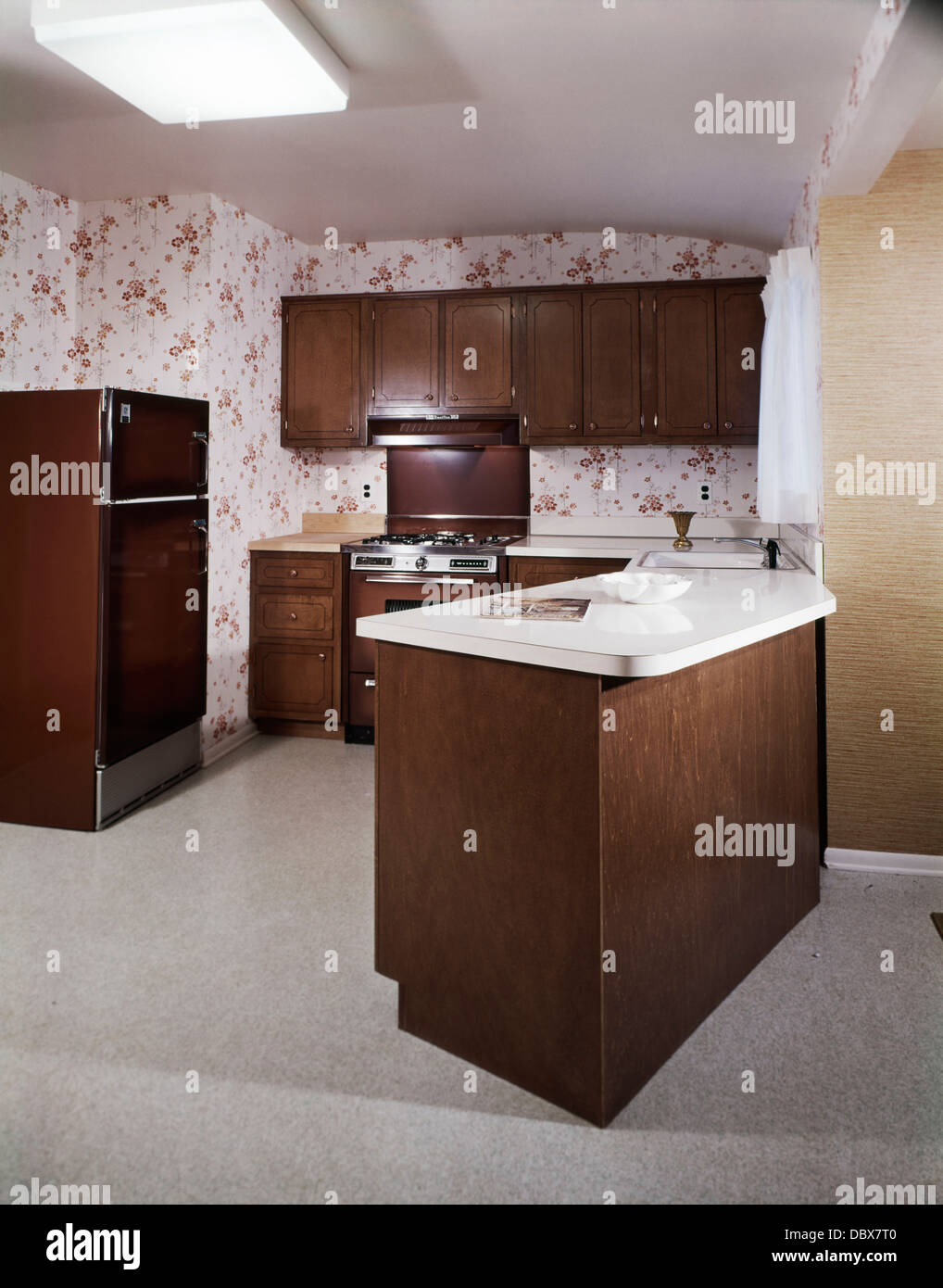 1970 1970 Retro Cuisine Avec Coin Des Armoires En Bois Sombre De L