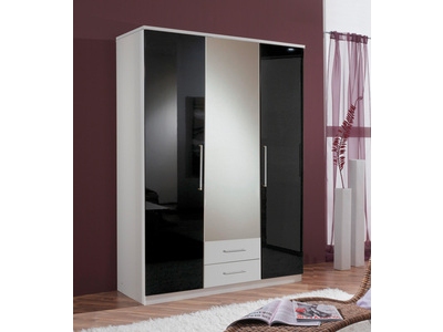 Armoire 3 Portes 3 Tiroirs Clack Blanc Portes Miroirs Blanc Brillant