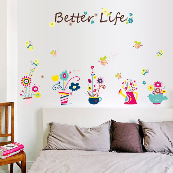 Acheter Mignon Fleur En Pot Papillon Abeille Cartoon Stickers