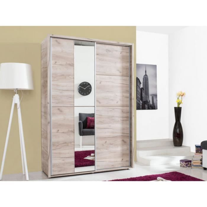 Armoire A 2 Portes Coulissantes Avec Miroir Coloris Chene Cuneo Arm