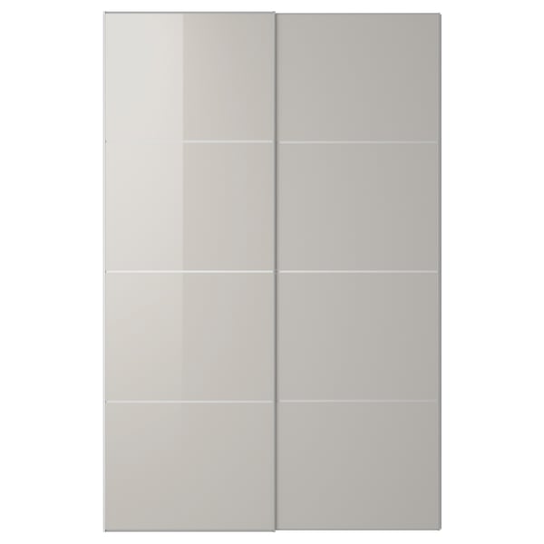 Hokksund Portes Coulissantes 2 Pieces Gris Clair Ultrabrillant