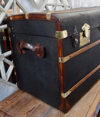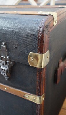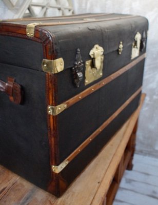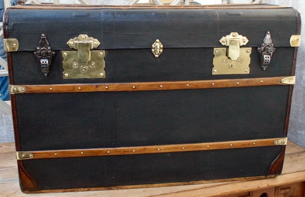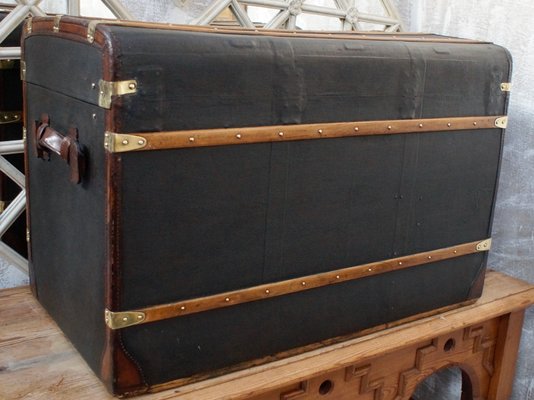 Grande Malle Valise De Voyage Ancienne Bois Cuir Noir 1900 Ebay