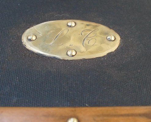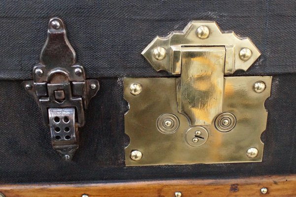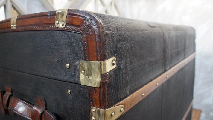Malle De Voyage Victorienne Ancienne En Toile De Cannabis Huilee