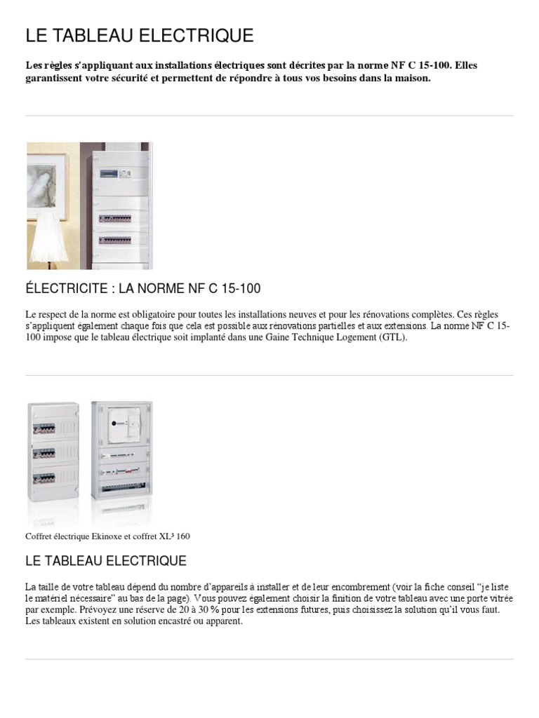 Norme Tableau Electrique Reglementation Nf C 15 100