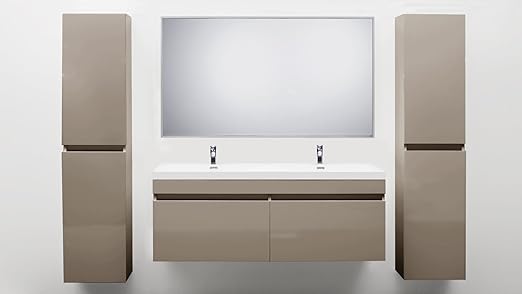 Meubles Salle De Bain Double Vasque Colonne Selita Laque Taupe