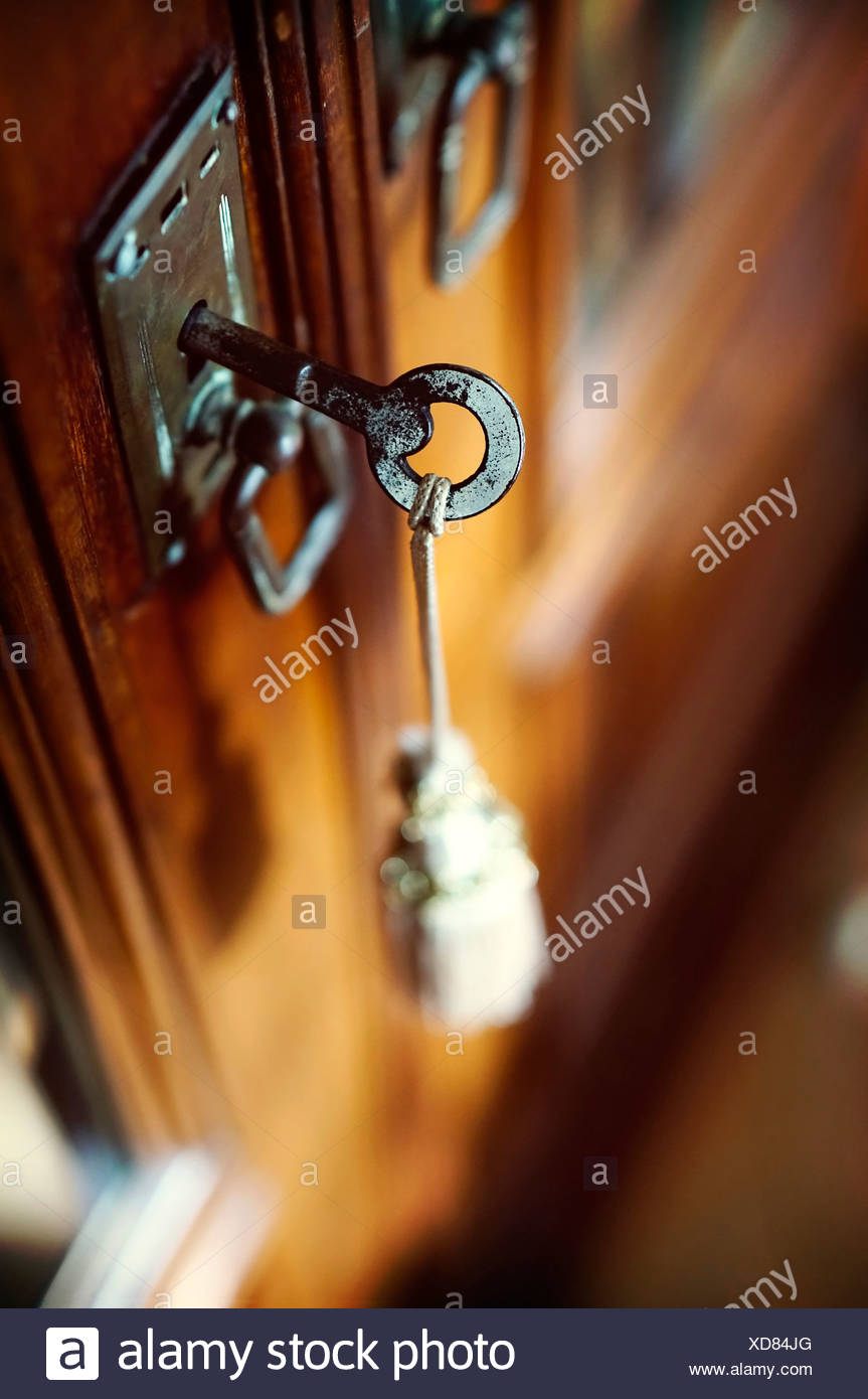 Ancienne Cle Dans La Serrure De L Armoire Banque D Images Et
