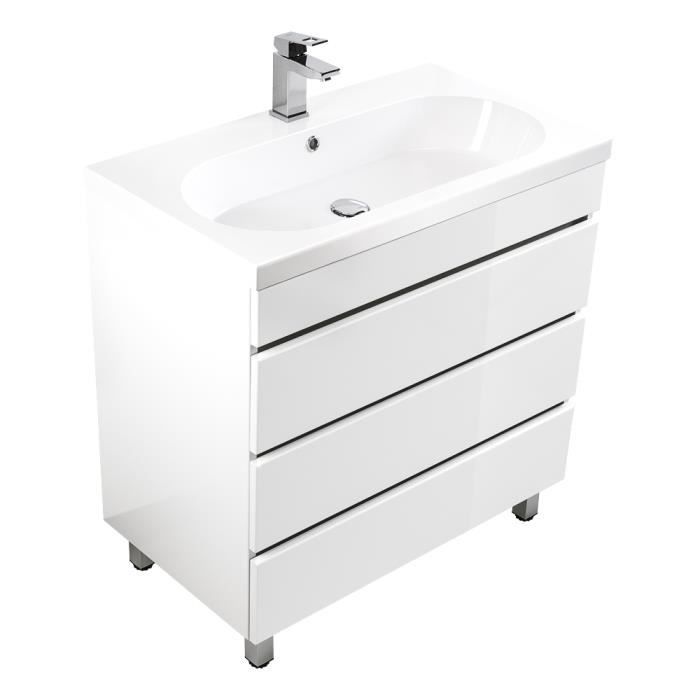 Meuble Salle De Bain Talis 90 Blanc Brillant Avec Tiroirs Sans