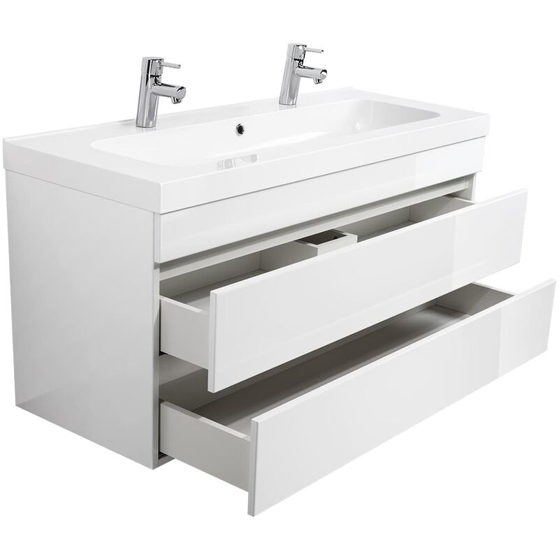 Meuble Salle De Bain Double Talis 120 Blanc Brillant Avec Tiroirs