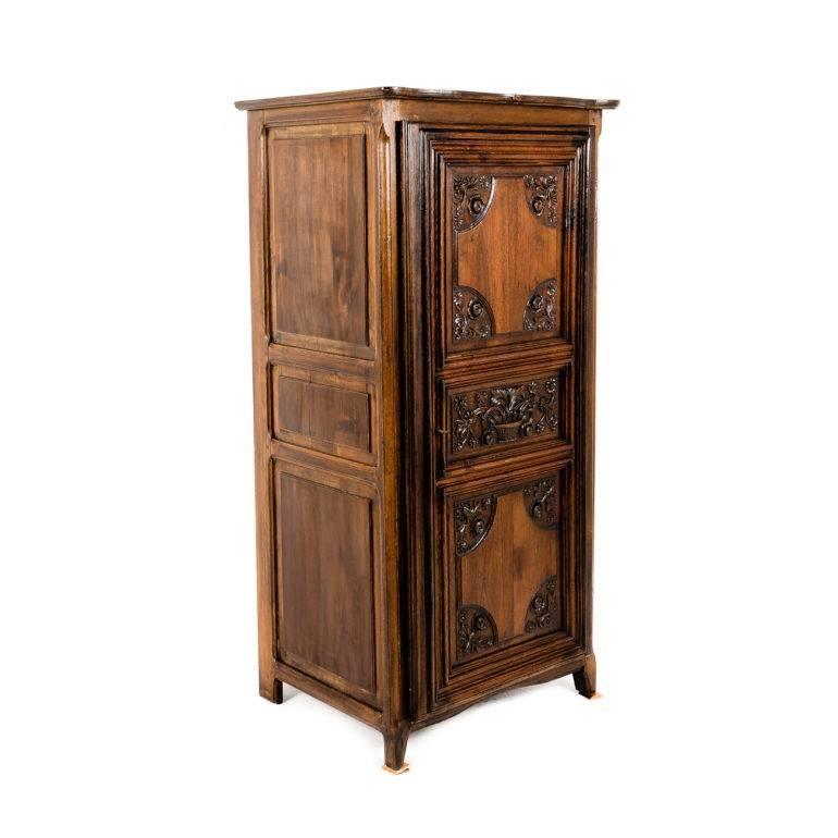 1800 S Antique French Armoire Narrow With Single Door Carved Of