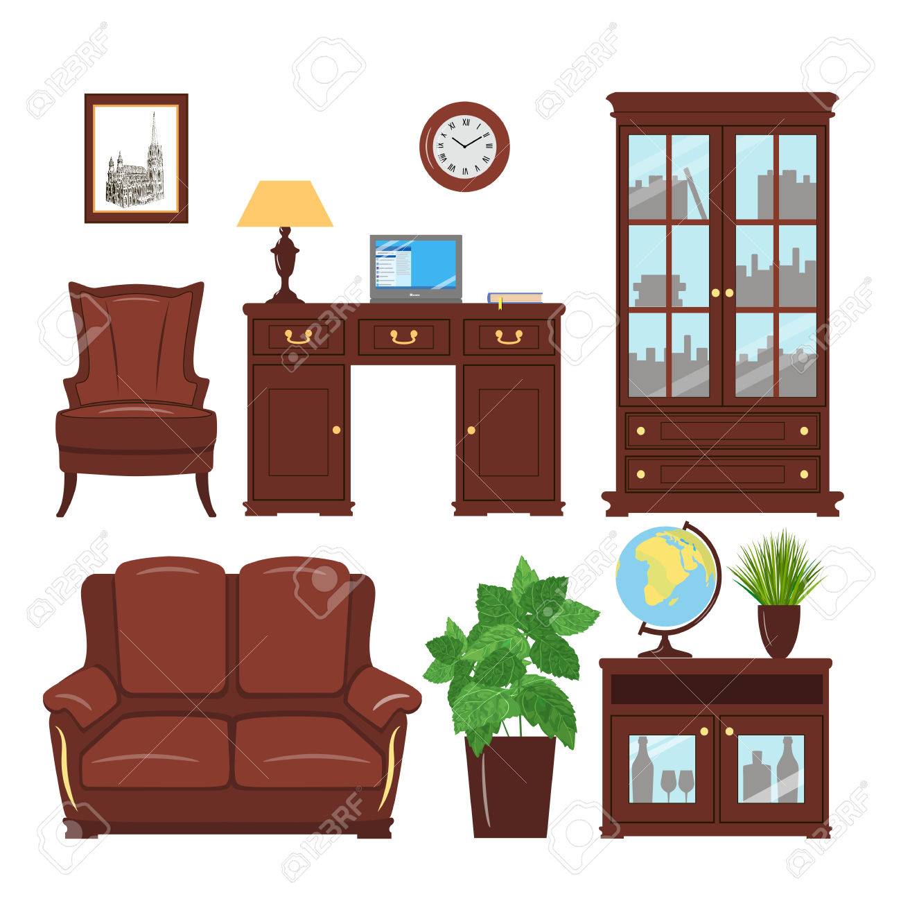 Ensemble D Elements De Mobilier De Bureau A Domicile Classique