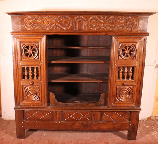 17th Century Breton Wardrobe Or Cupboard In Oak Turning In Boxwood