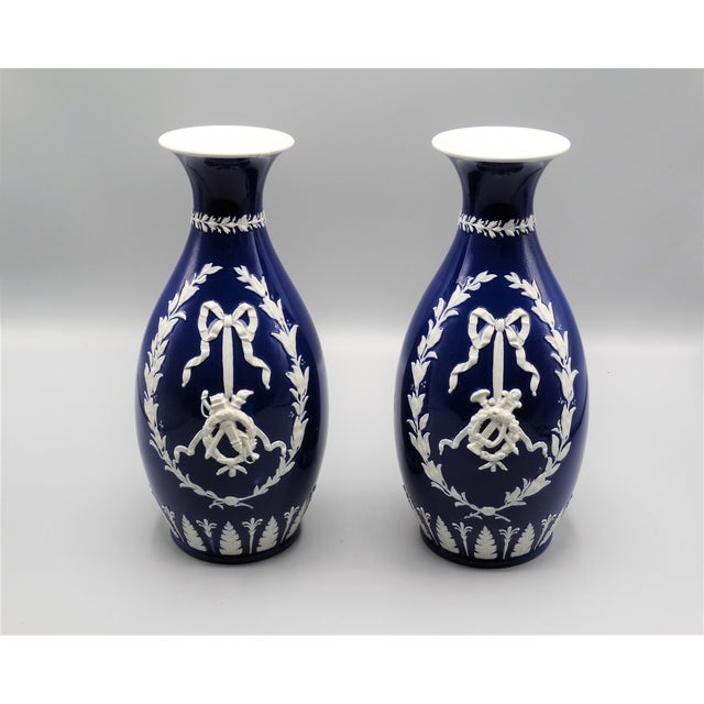 English Wedgwood Vases Pair With Swags Bows Chairish