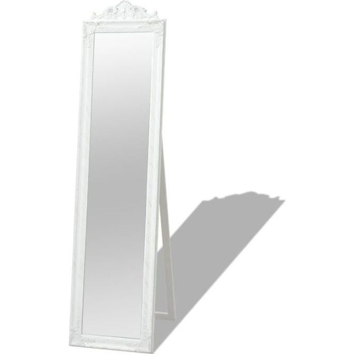 Miroir Sur Pied Style Baroque 160 X 40 Cm Blanc Argente Brillant