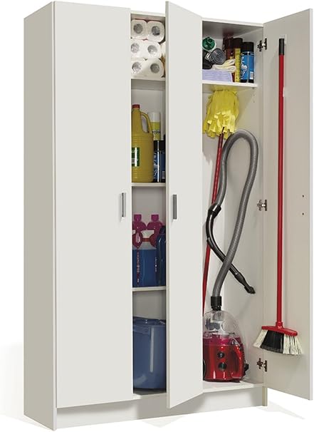 Pegane Armoire Rangement Nettoyage 3 Portes En Melamine Coloris