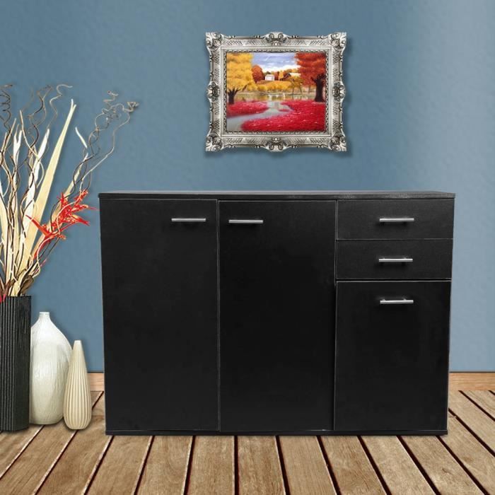 Buffet 3 Portes 2 Tiroirs Meuble De Rangement Cuisine L 106cm Noir