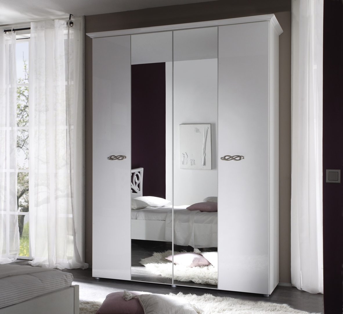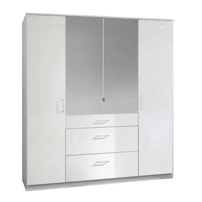 Armoire Design 4 Portes Avec Miroir Laquee Blanche Cristalline