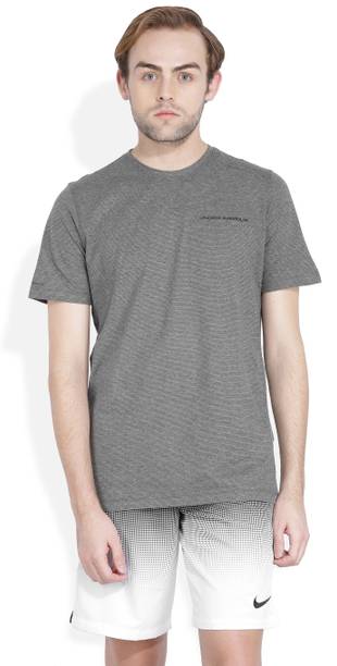 Under Armour Solid Men S Round Neck Grey T Shirt Best Price In