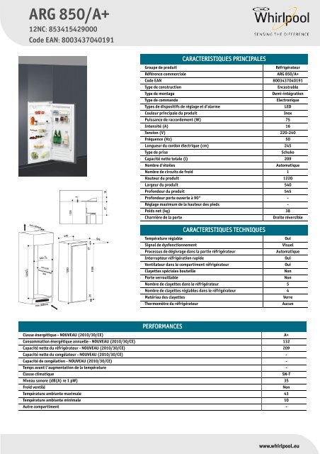 Whirlpool Arg734 A 2 Arg 734 A 2 Fiche Technique Prix Et Avis