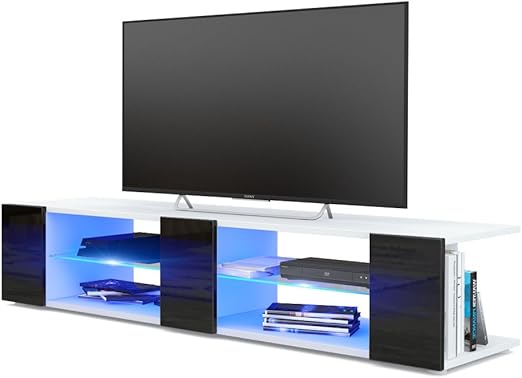 Meubles Meuble Tv Armoire Support Vegas Blanc Fronts Brillant Gris