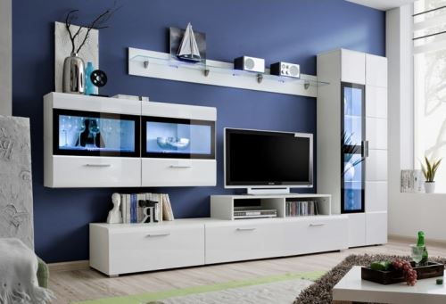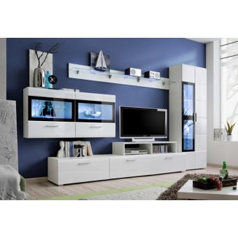 Ensemble Tv Bianca 3m Avec Armoire Vitrine Laque Et Led Modulable