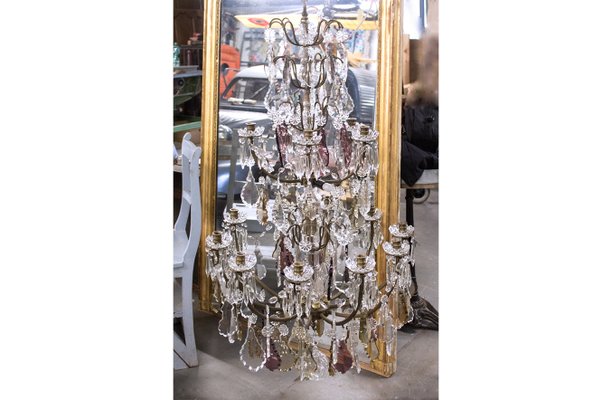 Large Antique French Chandelier With Crystal Leaf Prisms For Sale
