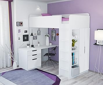 Polini Kids Lit Mezzanine Avec Armoire Et Bureau Blanc Gris Avec