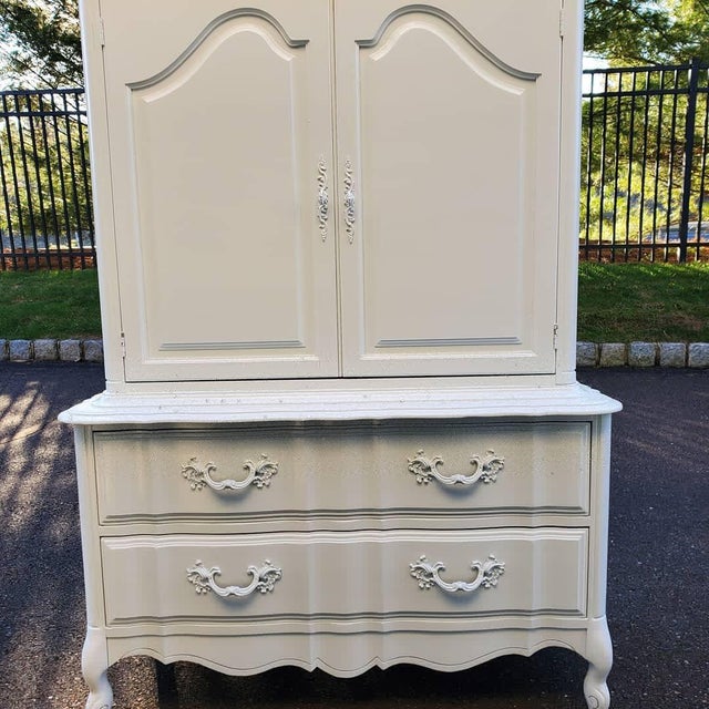 Ornate Vintage Off White French Provincial Style Armoire Tallboy