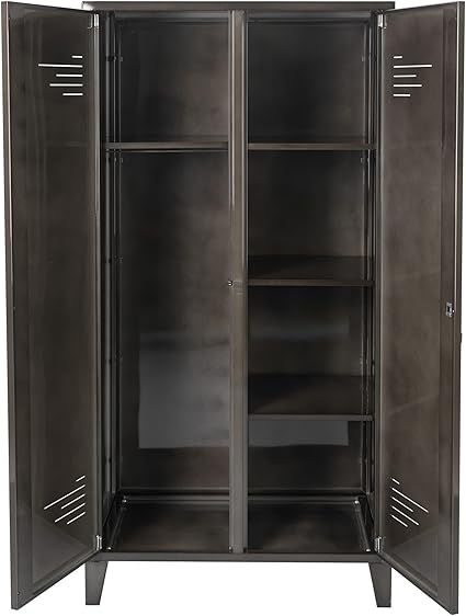 Armoire 2 Portes En Acier Noir Mat Lofter 95x200 Cm Armoires