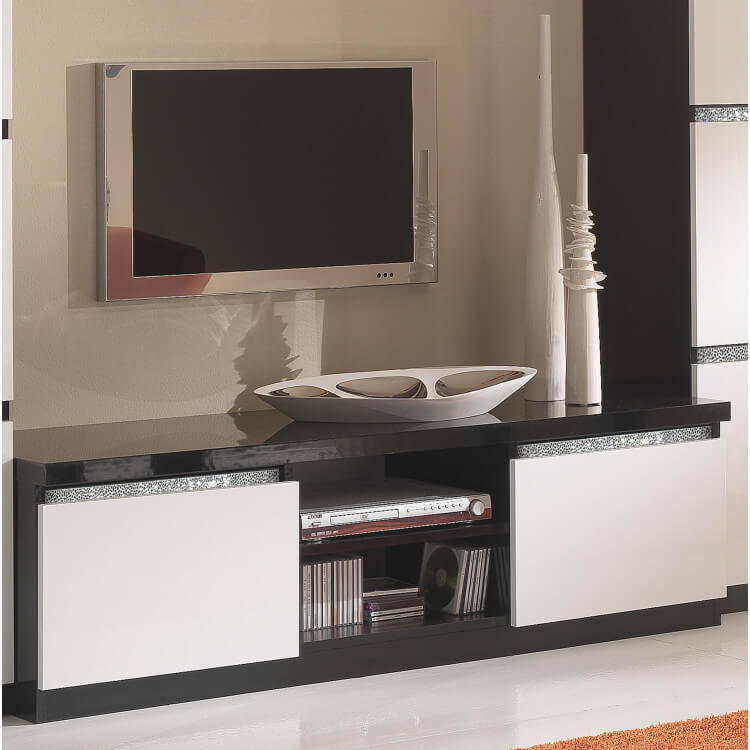 Meuble Tv Design Laque Noir Et Blanc Isabella Matelpro