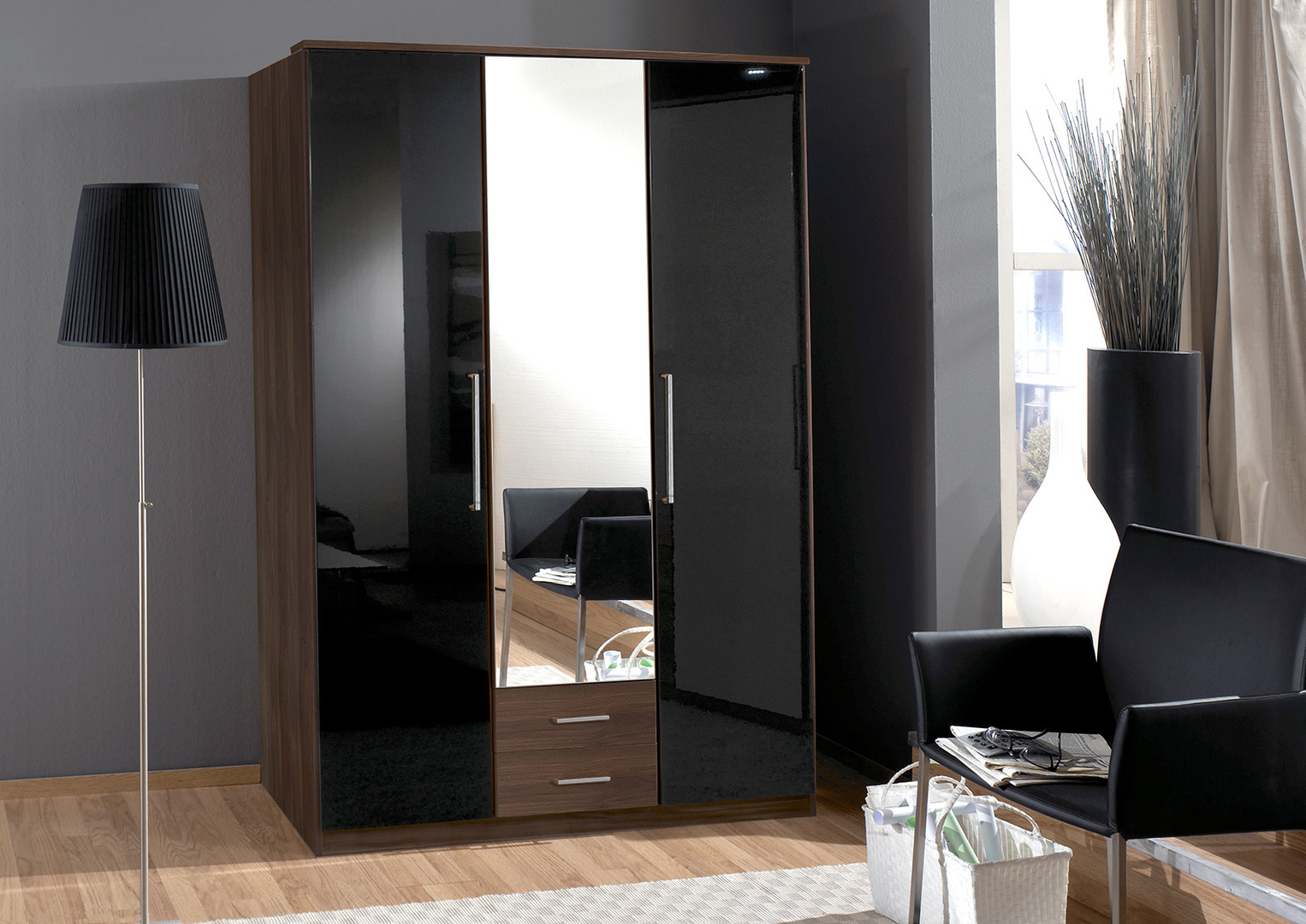 Armoire 3 Portes Avec Miroir Blanc Laque Et Noir Cbc Meubles