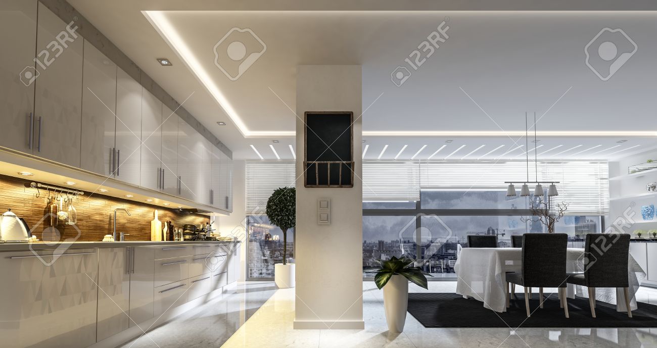 Photo Libre De Droit De Spacieux Cuisine Ouverte Et Salle A Manger