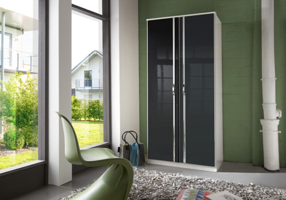 Armoire 2 Portes Trio Blanc Noir Brillant
