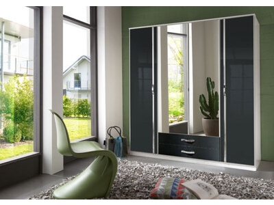 Armoire 3 Portes 2 Tiroirs Trio Blanc Noir Brillant