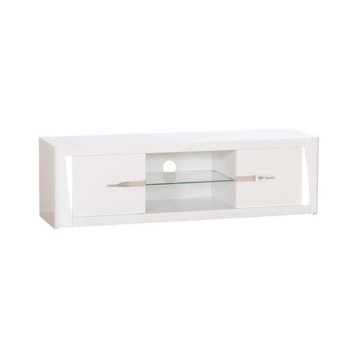 Meuble Tv 2 Portes Laque Blanc Brillant Megs L 160 X L 45 X H