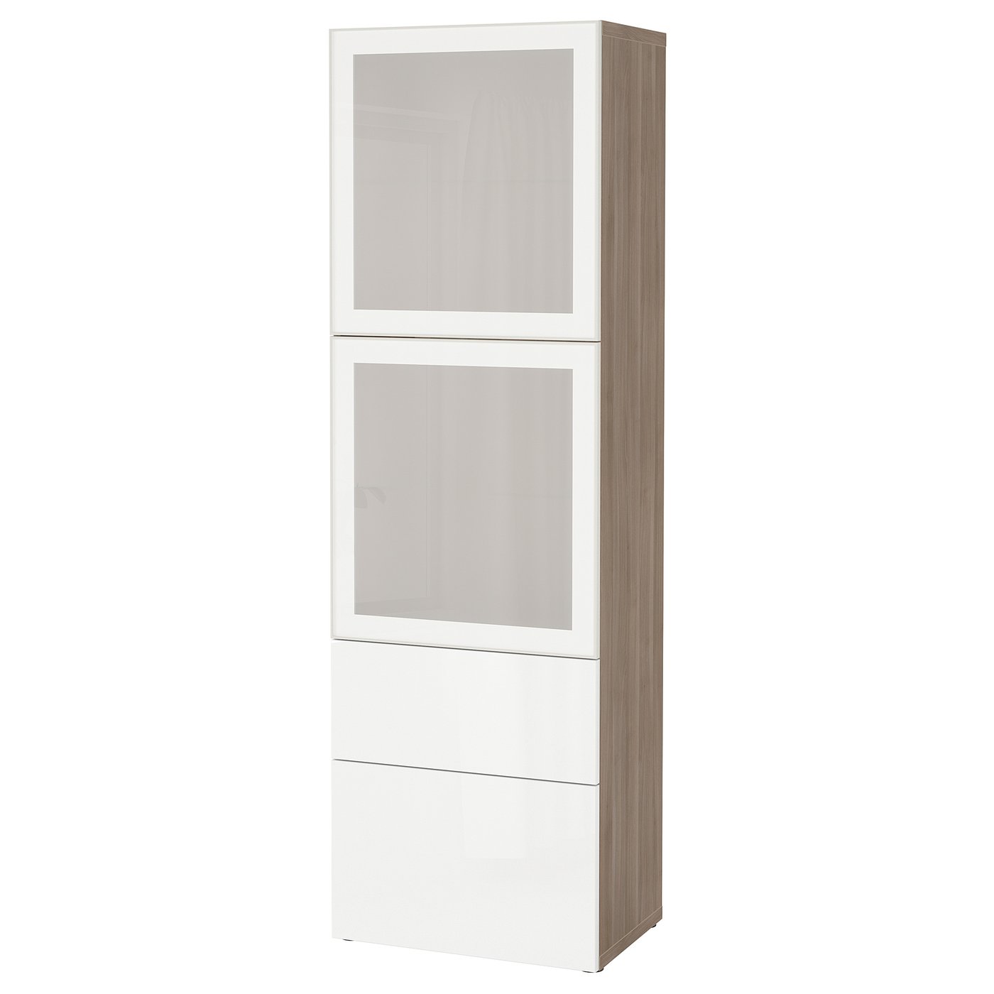 Besta Storage Combination W Glass Doors Walnut Effect Light Gray