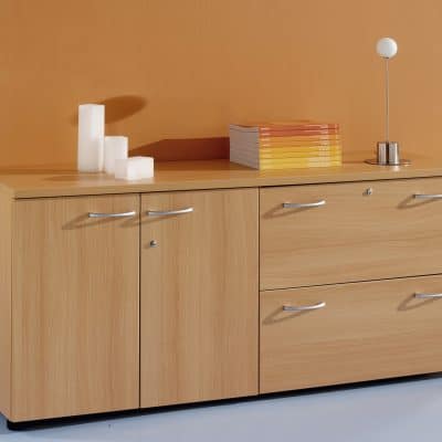 Armoire Basse De Bureau 2 Portes Hetre Alu Simmob