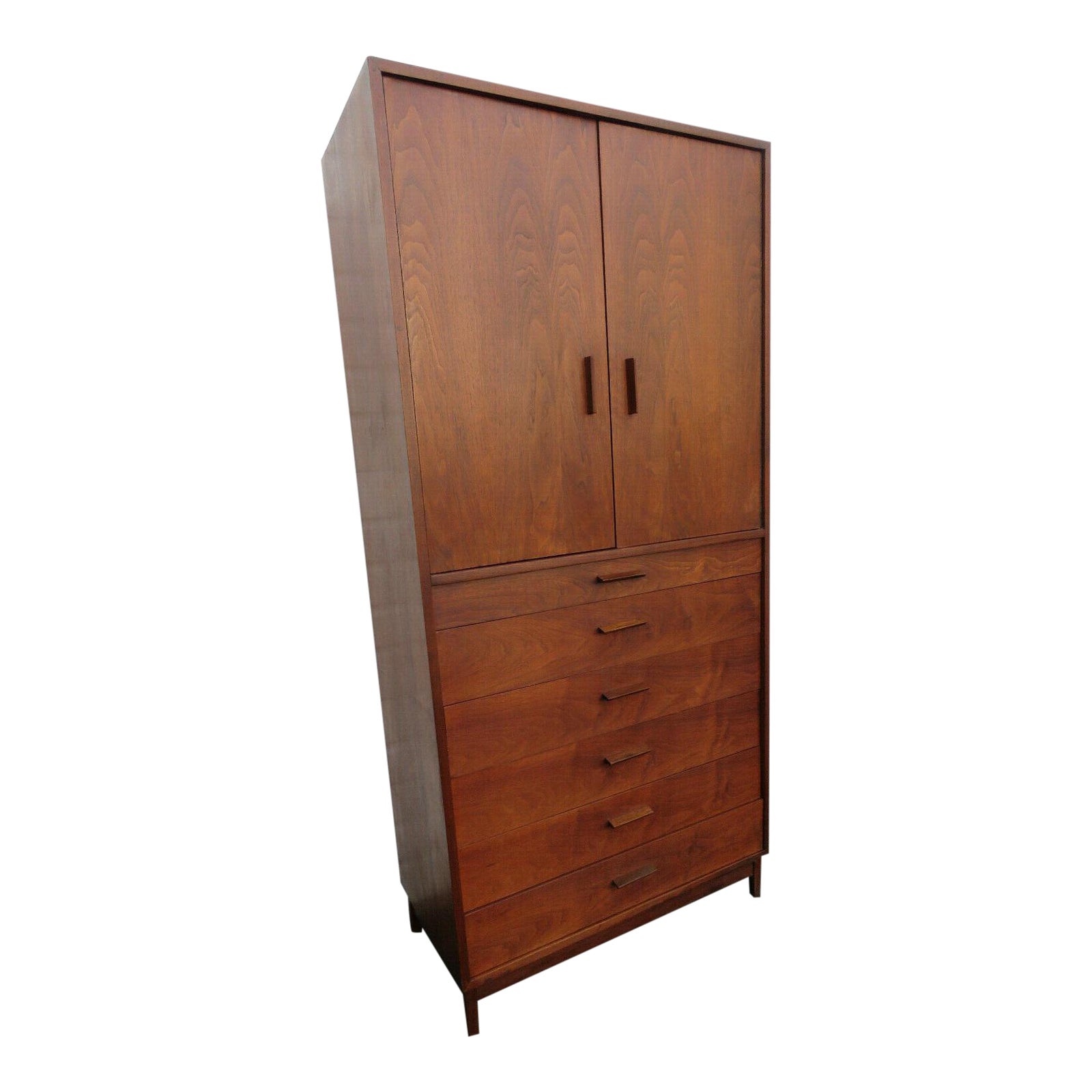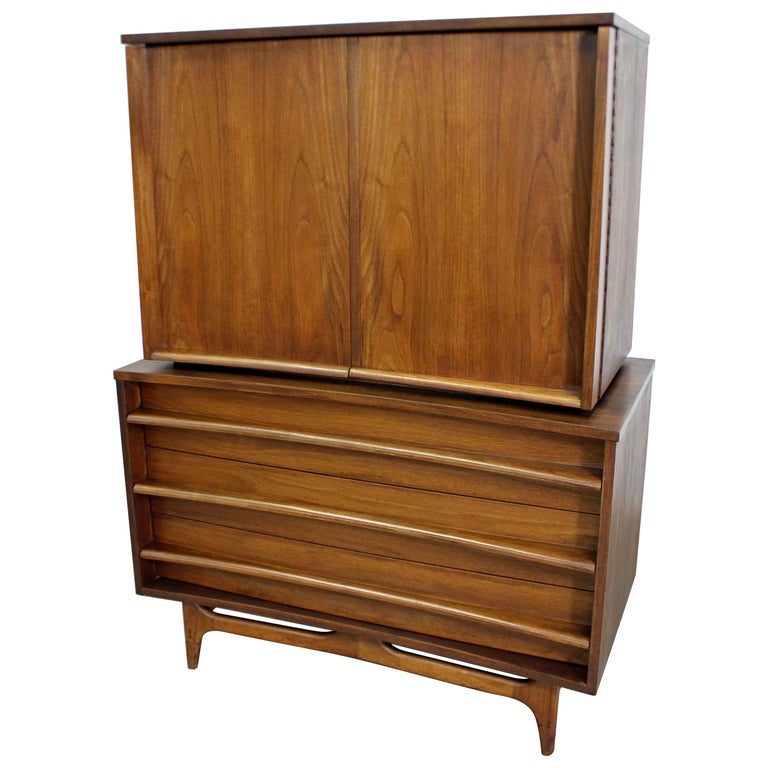 Mid Century Modern Concave Front Walnut Tall Chest Armoire At 1stdibs