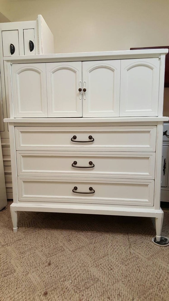 Shabby Shic Armoire Painted White And Distressed Dresser Tall Etsy
